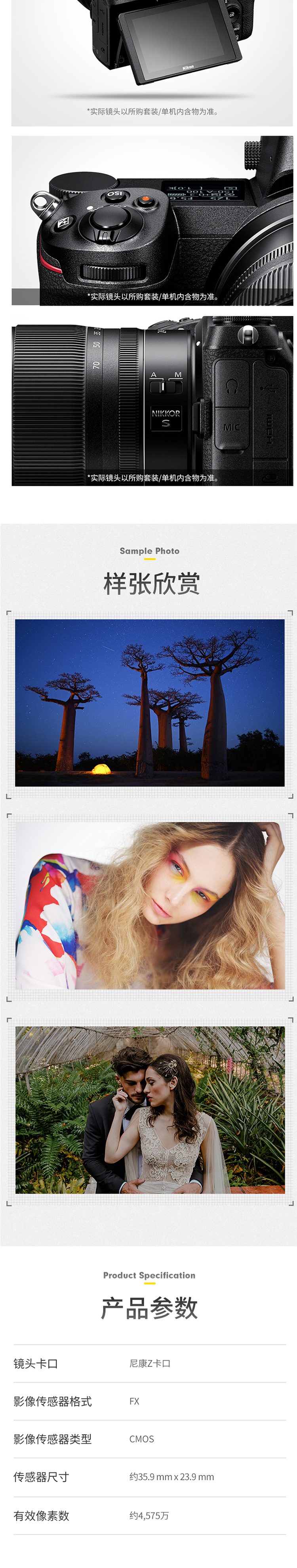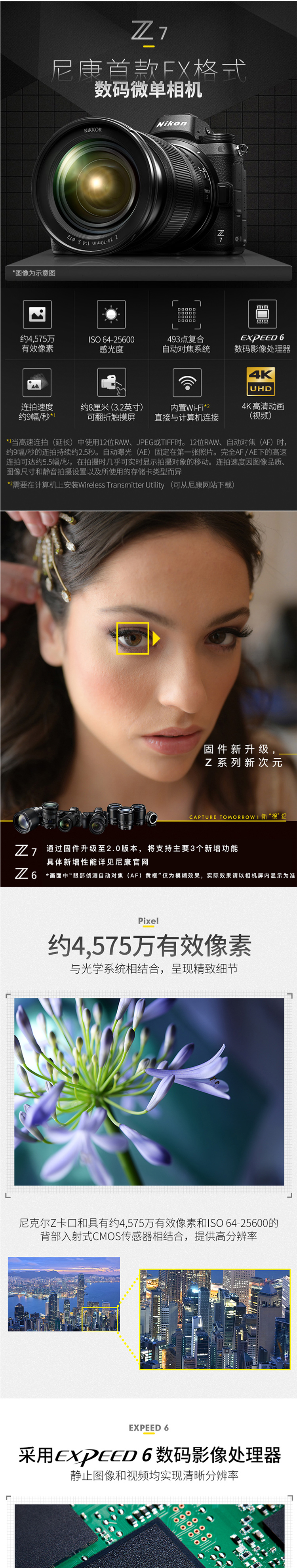 • 商品名称:尼康 微单相机数码相机微单套机(24-70mm f/4 微单镜头)Vlog相机 视频拍摄 (原装包+64G索尼XQD卡) Z 7 单镜头套装 微单镜头 黑色 (单位:台)