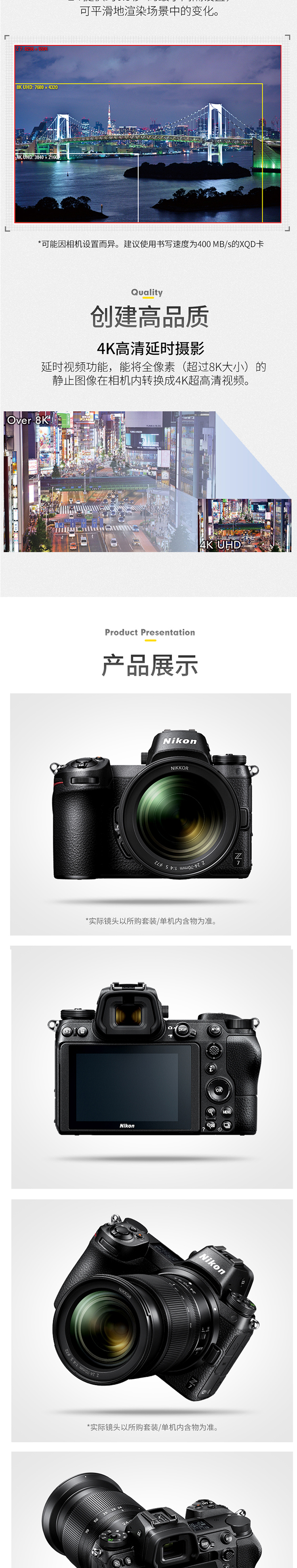 商品名称: 尼康 微单相机数码相机微单套机(24-70mm f/4 微单镜头)Vlog相机 视频拍摄 (原装包+64G索尼XQD卡) Z 7 单镜头套装 微单镜头 黑色 (单位:台)