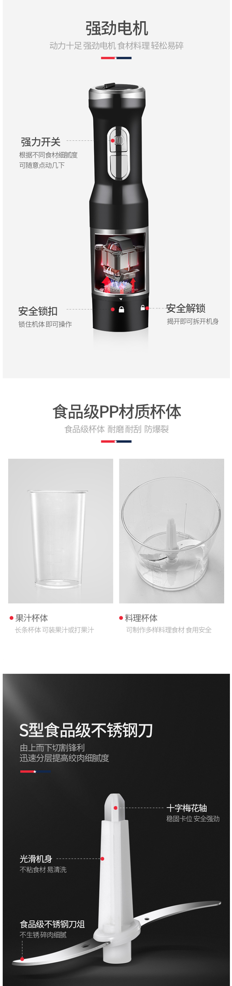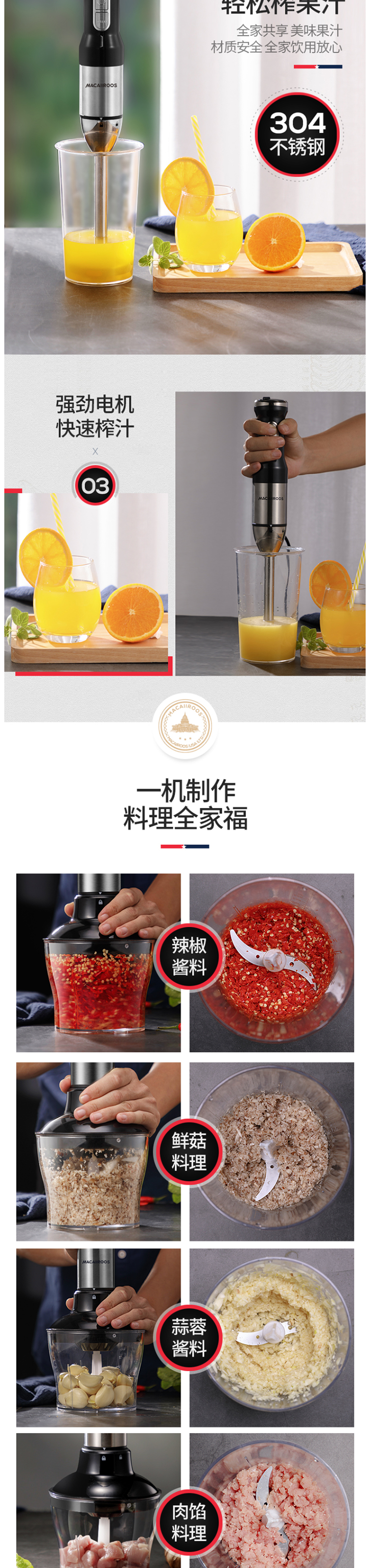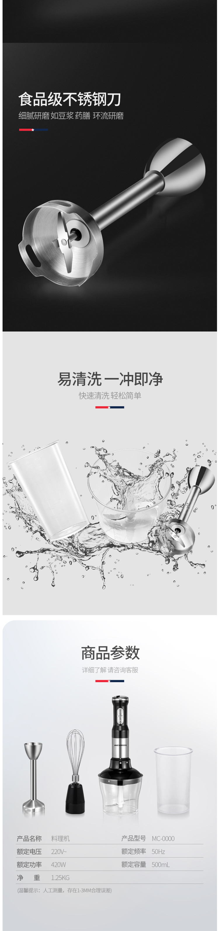 • 商品名称:迈卡罗 MC-2554 多功能电动料理棒 家用手持式搅拌机 料理机 黑色(单位:台)