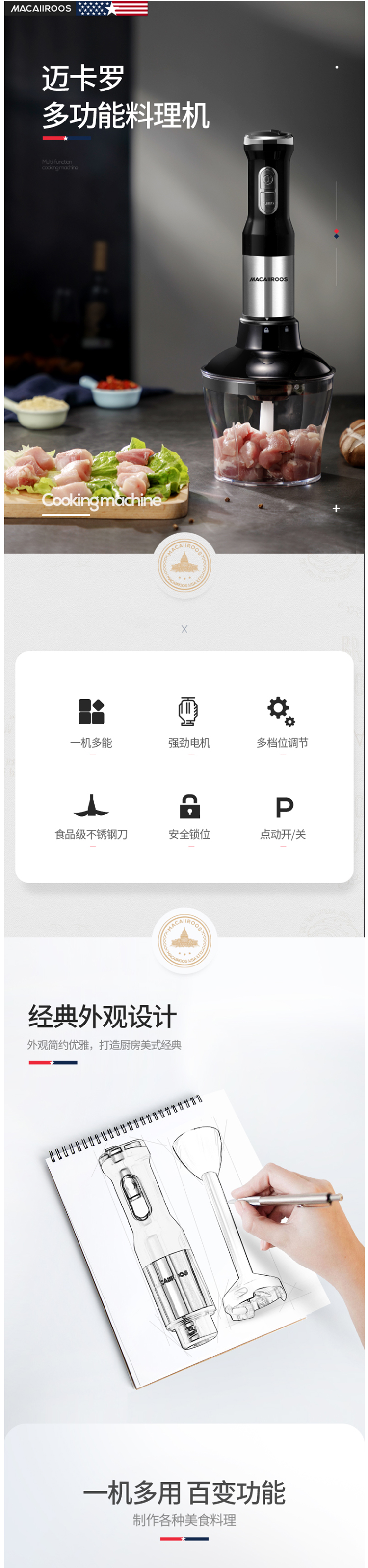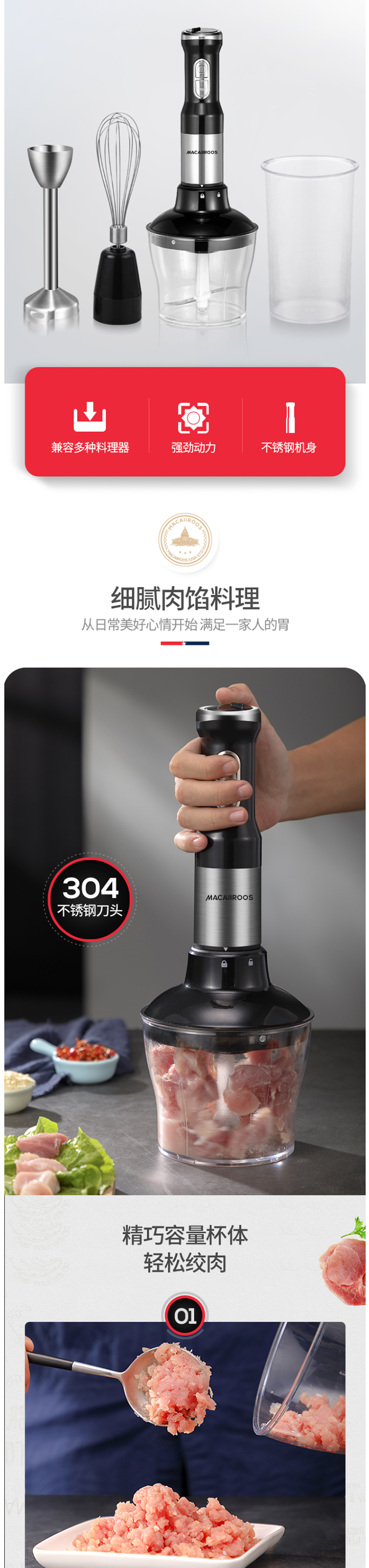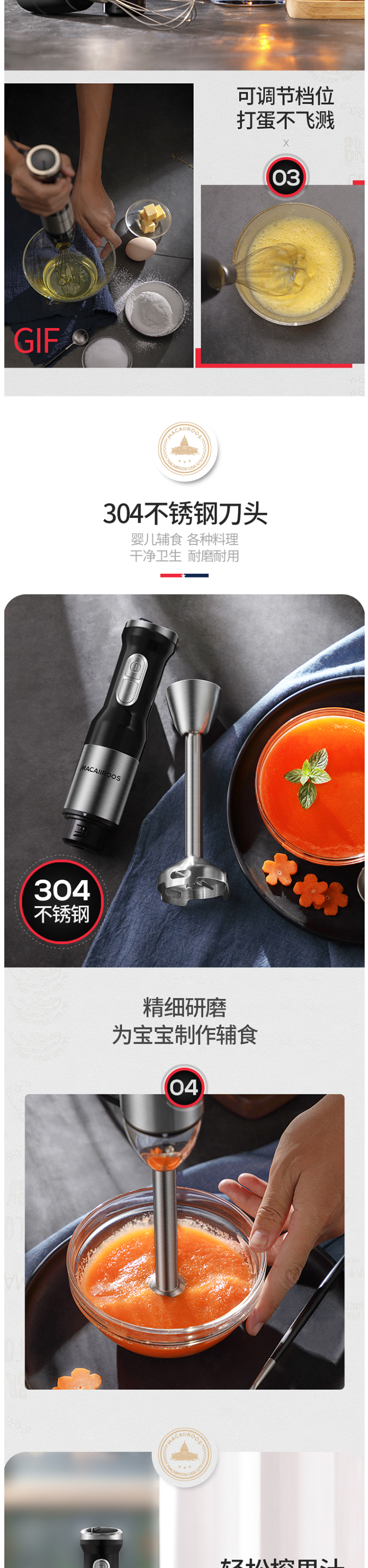 • 商品名称:迈卡罗 MC-2554 多功能电动料理棒 家用手持式搅拌机 料理机 黑色(单位:台)