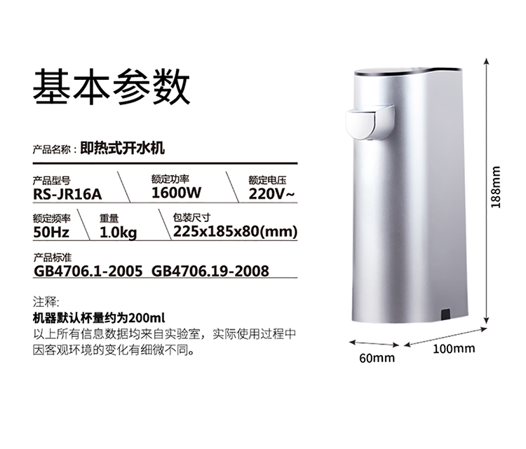 荣事达 RS-JR16A 即热水机便携式开水机 200ml 金属色 (单位:台)