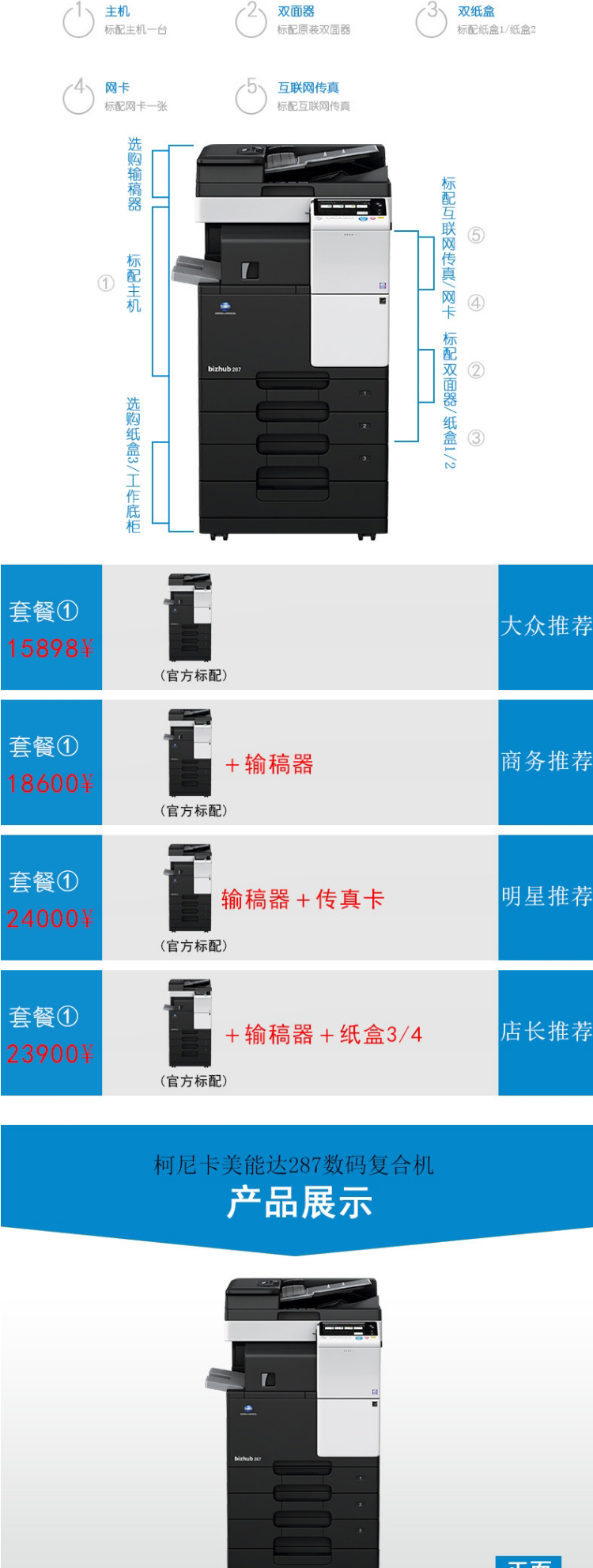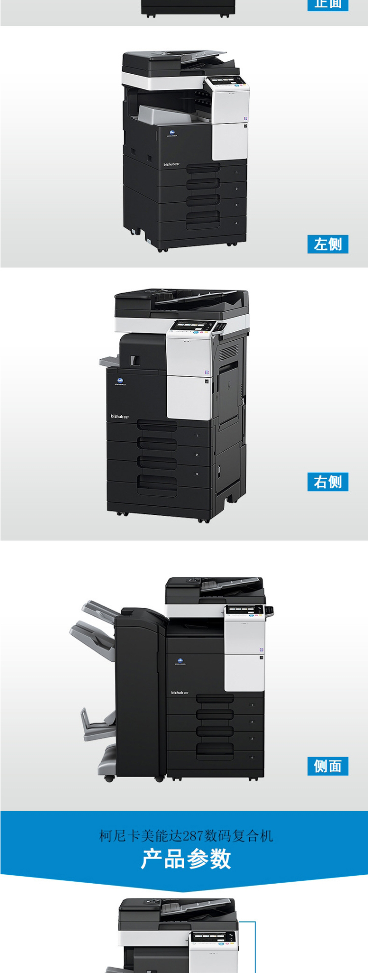 办公设备  > 打印/复印设备  > 复合机/一体机  >  柯尼卡美能达/KONICA MINOLTA  >  柯尼卡美能达 bizhub287df 复合机黑白激光数码多功能复合机(官方标配+输稿器+纸盒3/4)(单位:台)