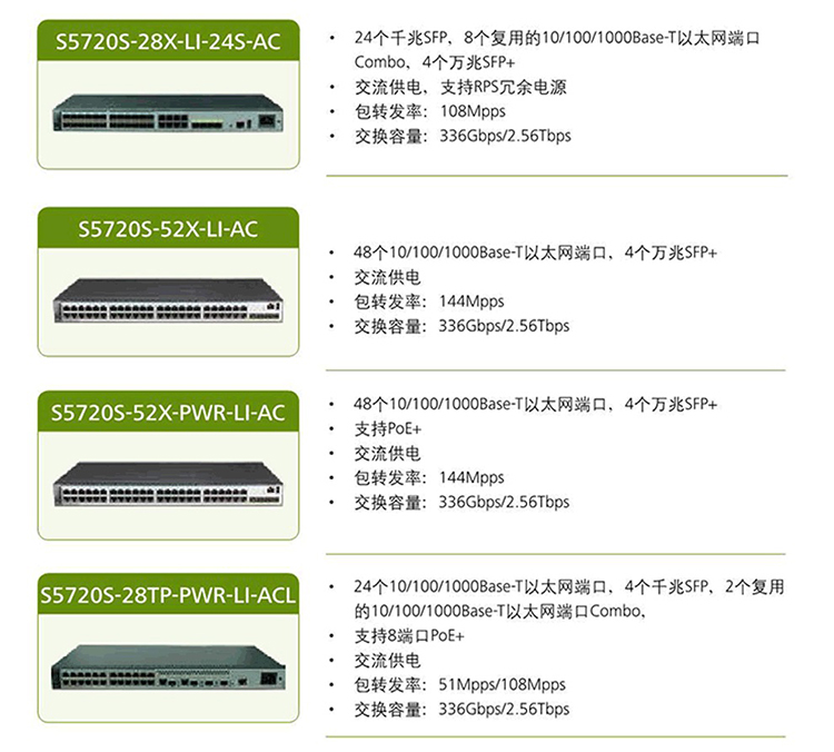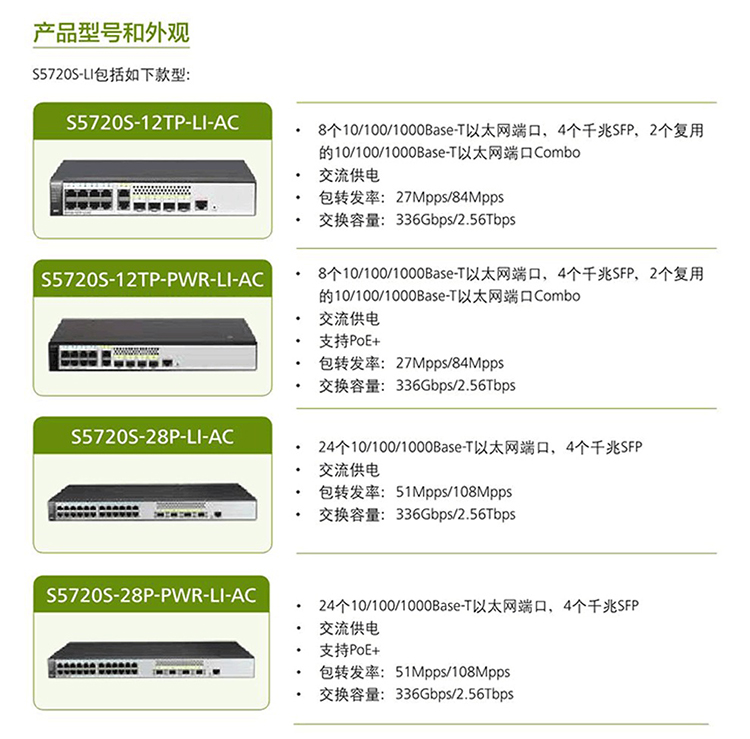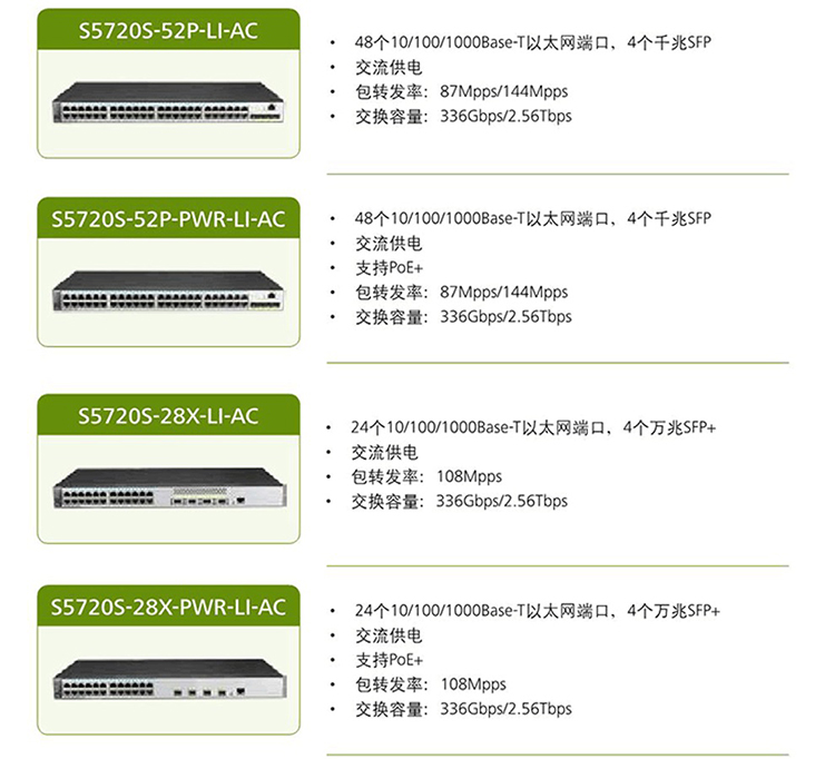 • 商品名称:华为 S5720S-52P-PWR-LI-AC POE企业级三层千兆网管交换机(配华为SFP-GE-LX-SM1310千兆单模模块) 黑(单位:台)