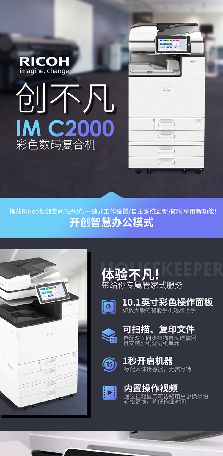 • 商品名称:理光 IM C2000 A3彩色多功能数码复合机多功能一体机 (配双面输稿器) 白色(单位:台)