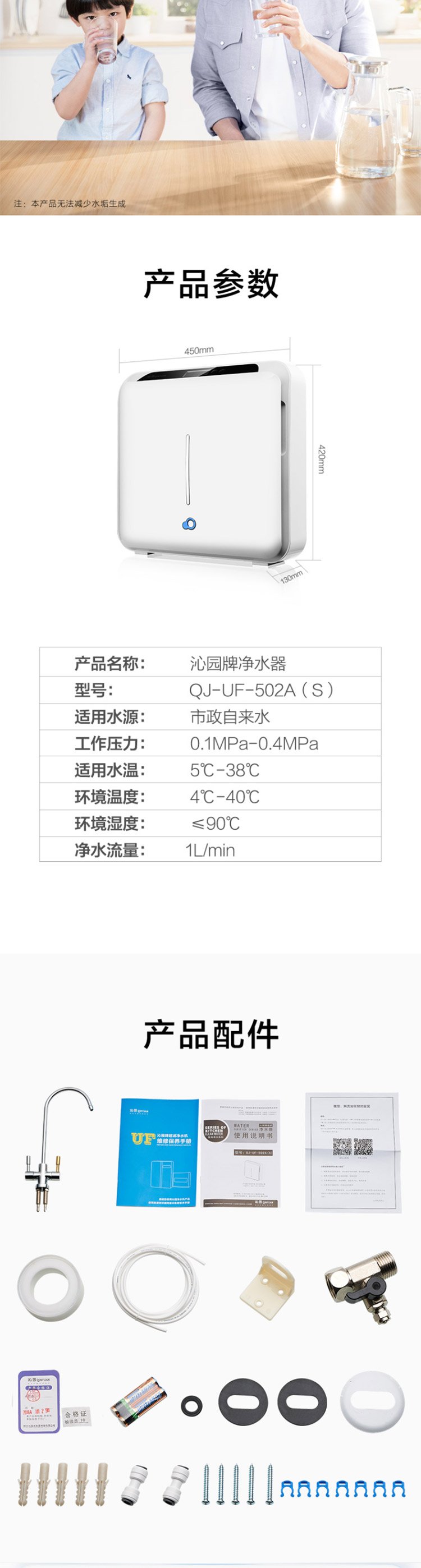 • 商品名称:沁园(TRULIVA) QJ-UF-502A(S) 家用净水器 即滤型超滤机 长寿命滤芯 无废水 矿物质净水机(单位:台)