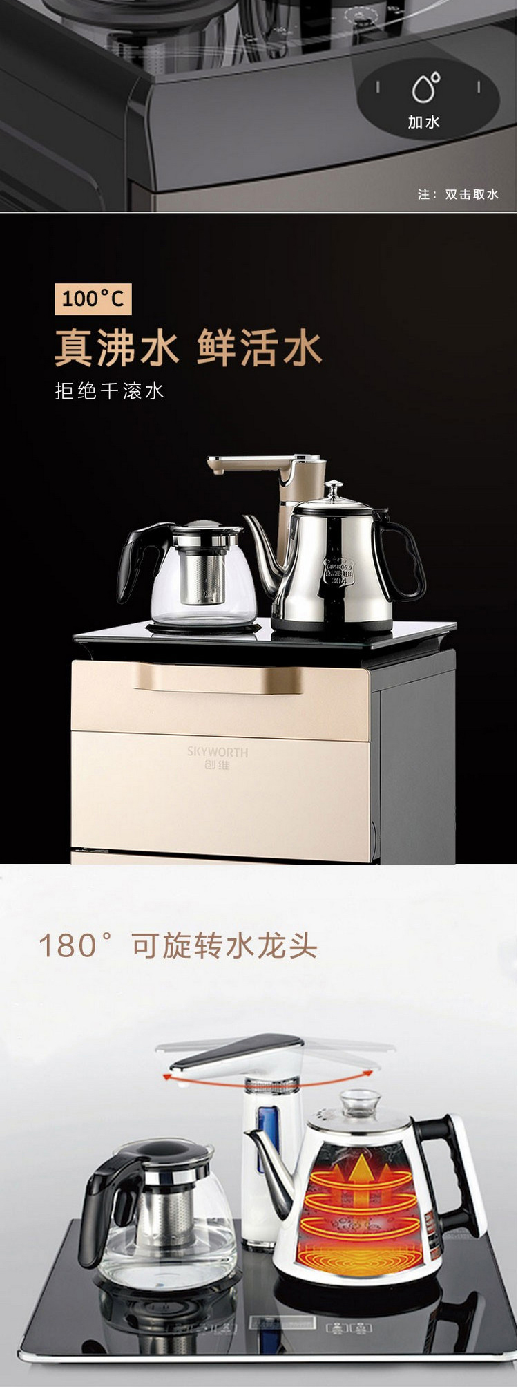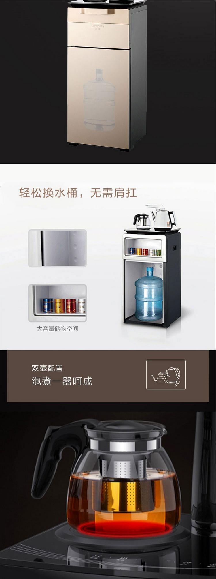 • 商品名称:创维(Skyworth)C2 300*300*800mm 茶吧机家用家电办公多功能立式下置水桶温热饮水机 土豪金(单位:个)