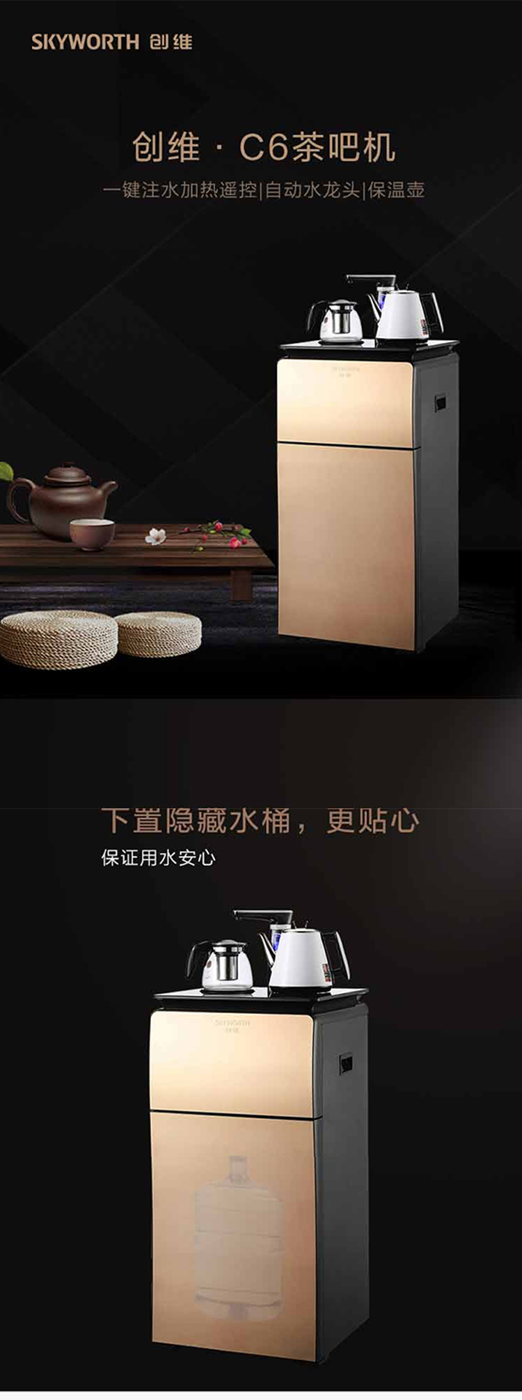 创维(Skyworth)C6 300*300*800mm 茶吧机家用家电办公多功能立式下置水桶温热饮水机 浅金(单位:个)
