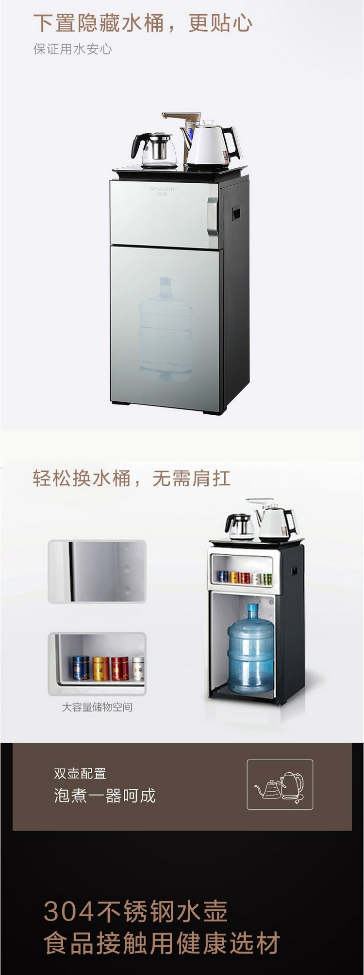 • 商品名称:创维(Skyworth)c3 300*300*800mm 茶吧机家用家电办公多功能立式下置水桶温热型智能饮水机 摩卡金(单位:个)