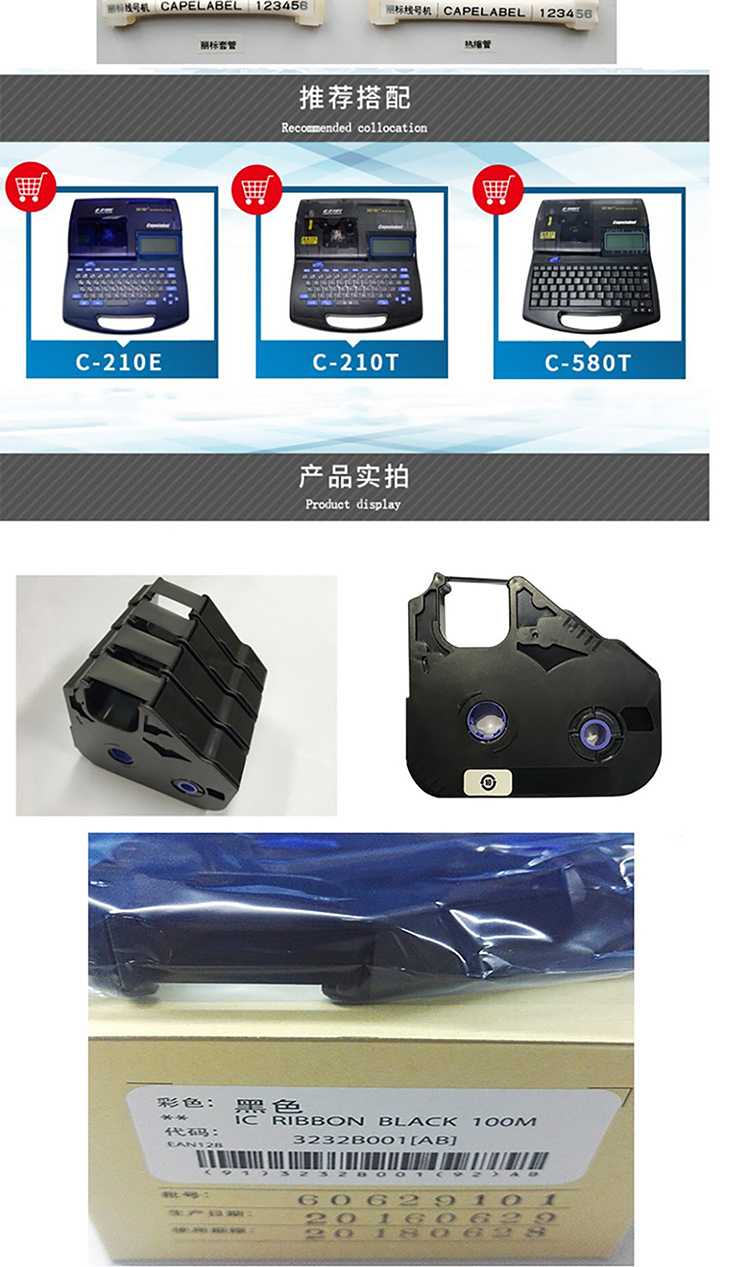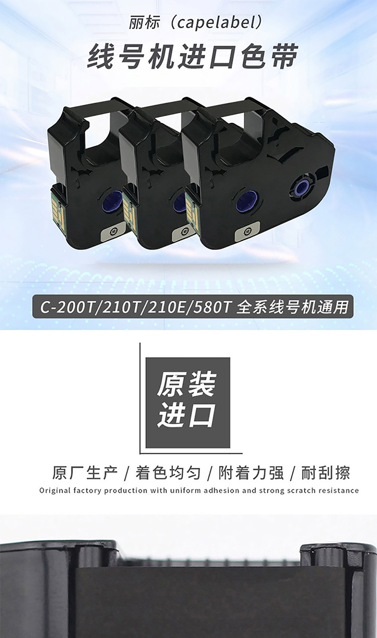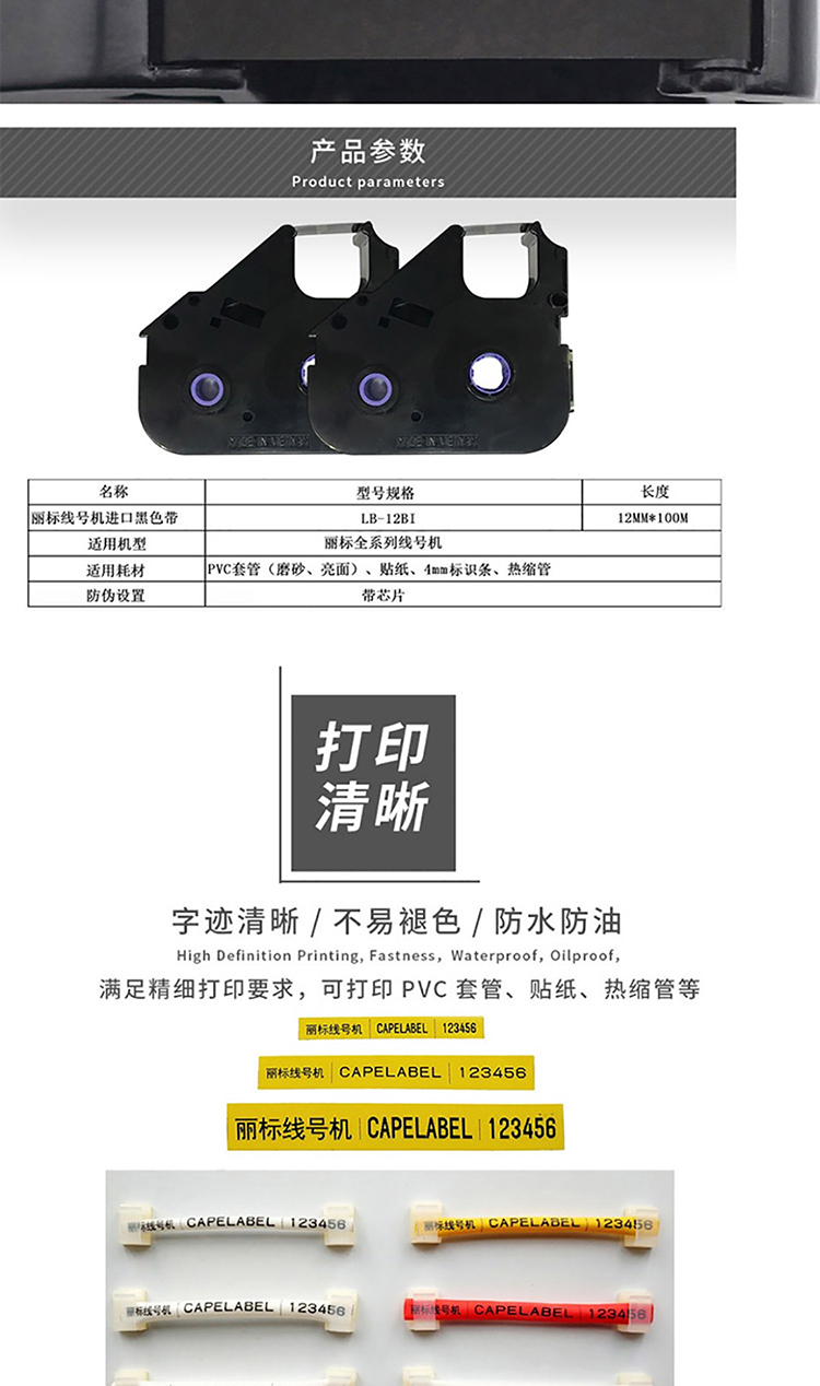 商品名称: 丽标(capelabel) LB-12BI 100m 线号机色带(计价单位:个) 黑色 适用于丽标C-210T打号机