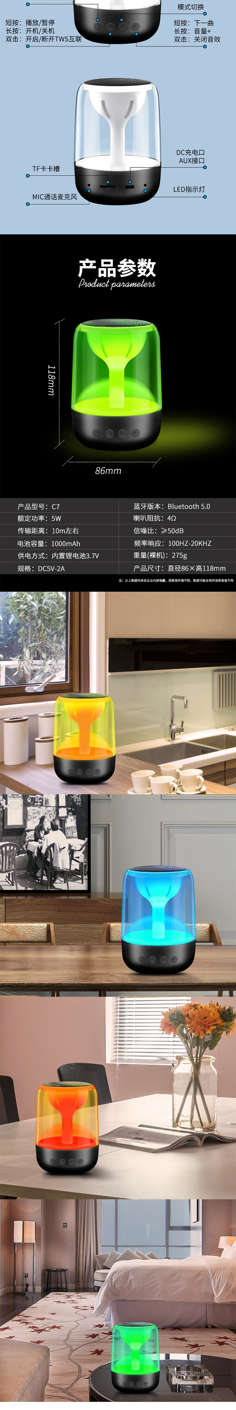 • 商品名称:雅韵仕 C7Plus 便携式3d环绕大音量低音炮蓝牙音箱音响 黑色/珍珠白 (单位:台)