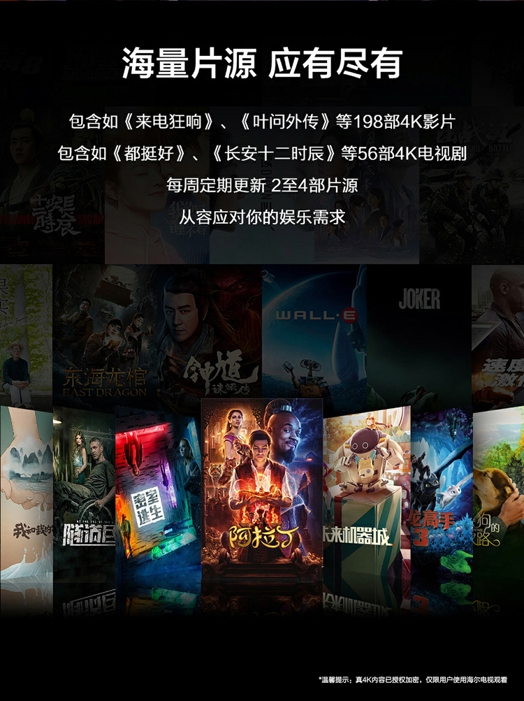 • 商品名称:海尔 LU55J51 55英寸4K超高清 人工智能 8K解码 语音遥控 电视机 超窄边框LED液晶电视2+16G(包含加厚管壁挂架、配件、安装等所有费用) 金色 (单位:台)