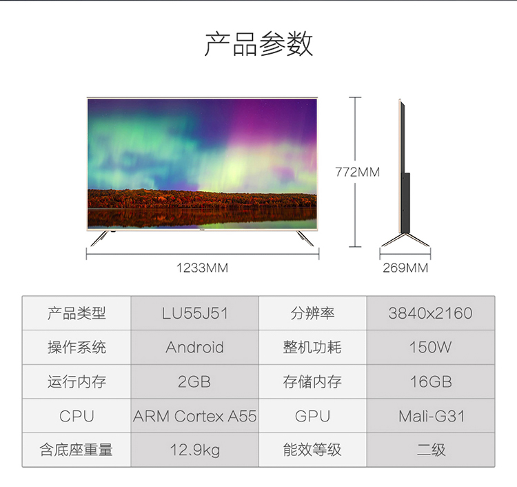 生活电器  > 电视机  > 平板电视  >  海尔斯/HEALTH  >  海尔 LU55J51 55英寸4K超高清 人工智能 8K解码 语音遥控 电视机 超窄边框LED液晶电视2+16G(包含加厚管壁挂架、配件、安装等所有费用) 金色 (单位:台)