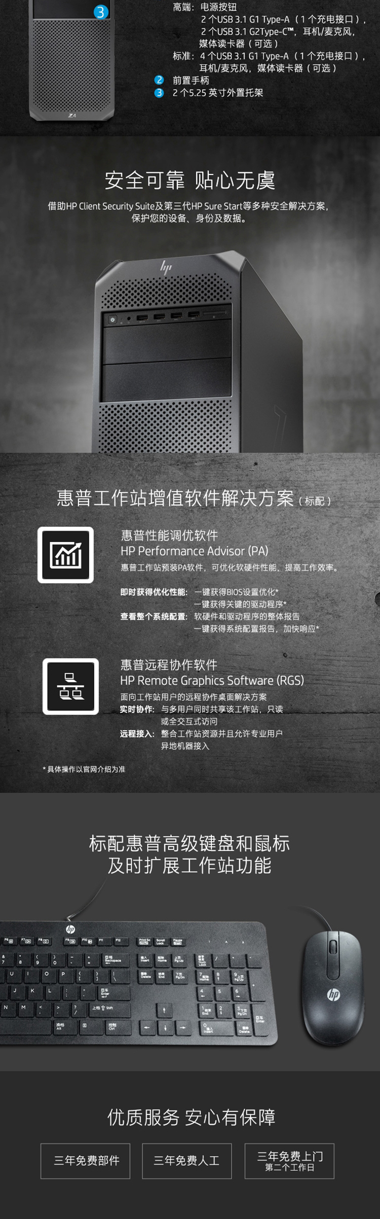 • 商品名称:惠普 Z4 G4 台式机工作站(W2123/8GB/ECC/1TB/SATA/P620/2GB独显/DVDRW/27寸显示器/系统支持win7/win10/3年保修)(单位:台)