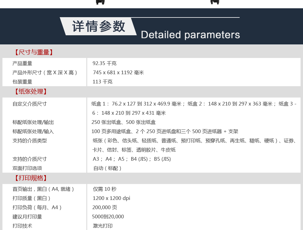 • 商品名称:惠普 HP M725F(双面器/250页/黑白激光)多功能一体机