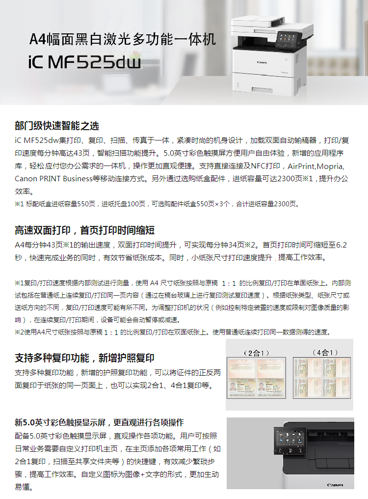 商品名称: 佳能 CANON IC MF525DW 黑白激光多功能一体机 含上门安装服务