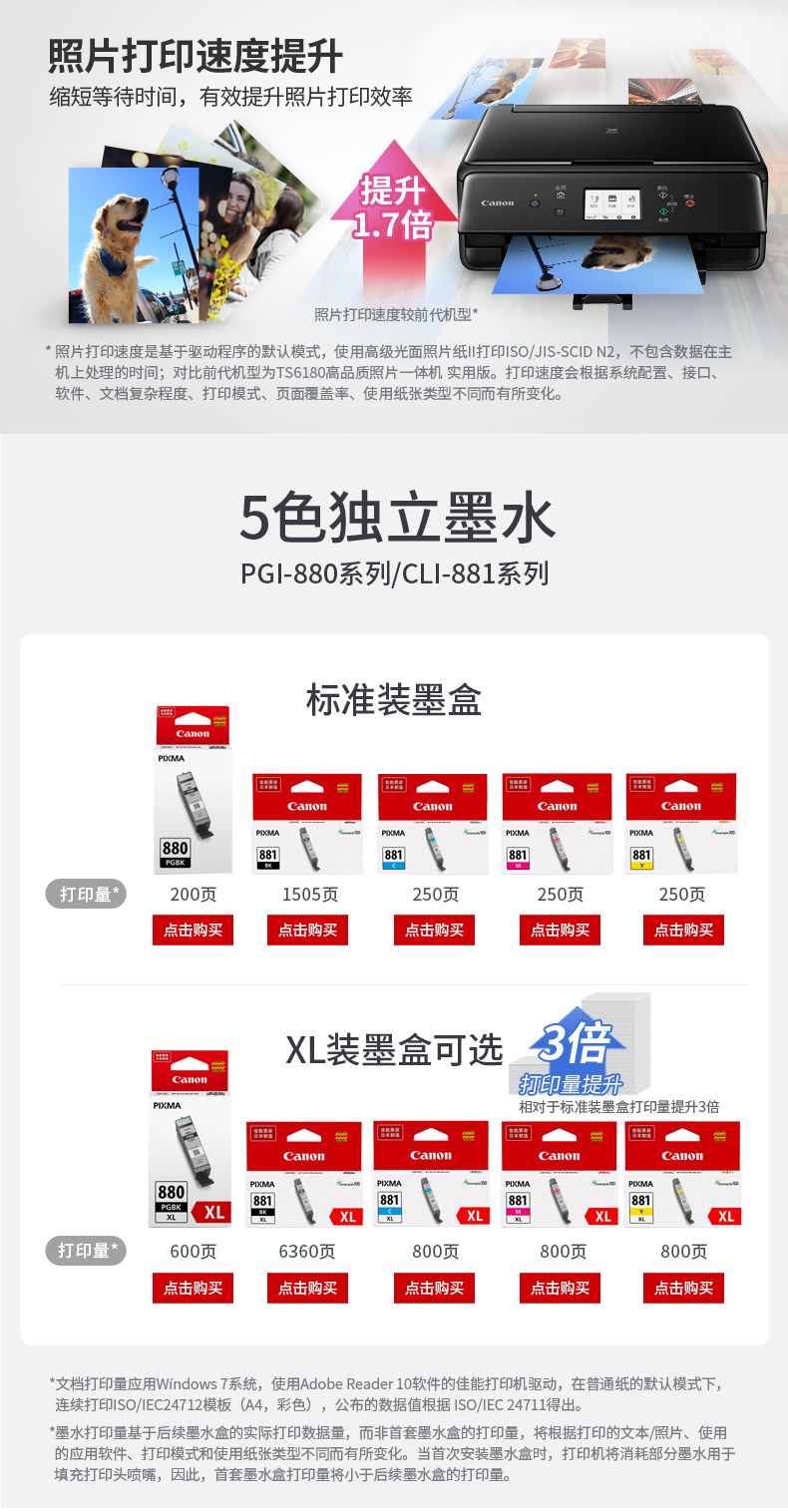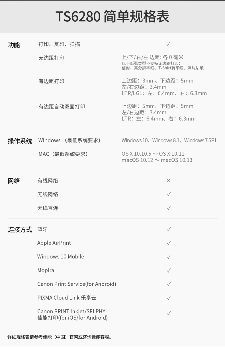 • 商品名称:佳能 CANON TS6280 (自动双面打印/100页/彩色喷墨) 多功能一体机