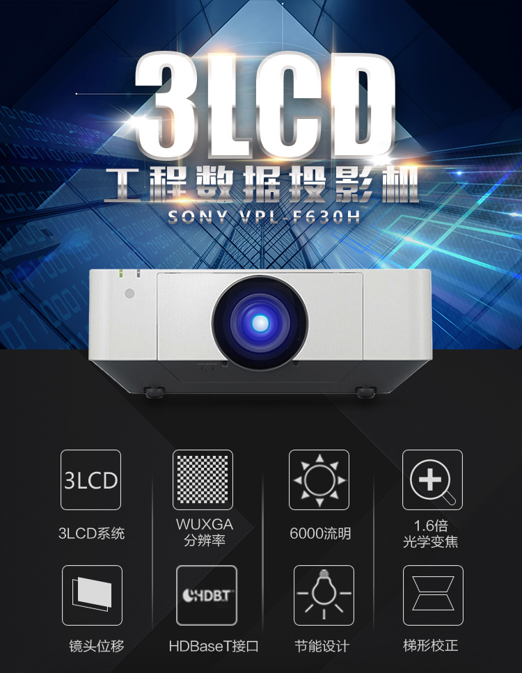 • 商品名称:索尼 SONY VPL-F630H(3LCD/6000流明/1920×1200DPI)投影机