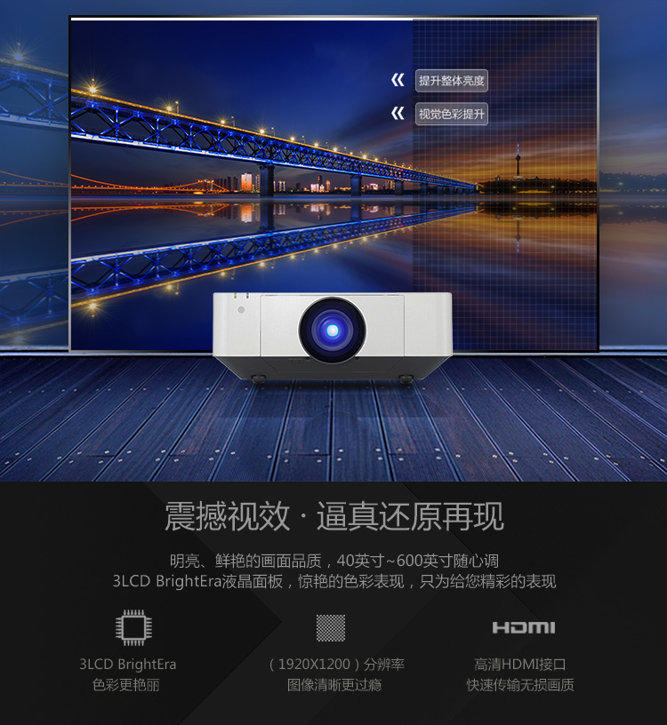 商品名称: 索尼 SONY VPL-F630H(3LCD/6000流明/1920×1200DPI)投影机