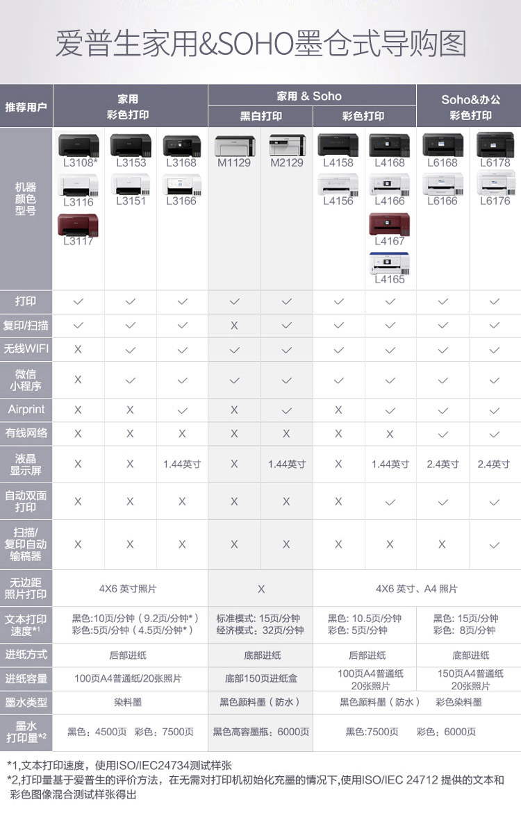 • 商品名称:爱普生 EPSON L3108(手动双面打印/100页/彩色喷墨)多功能一体机