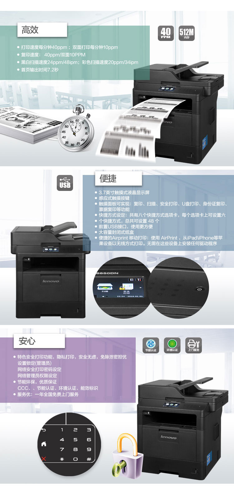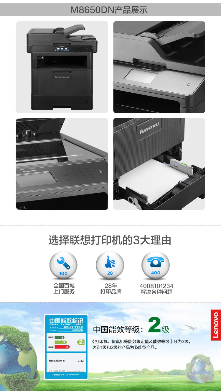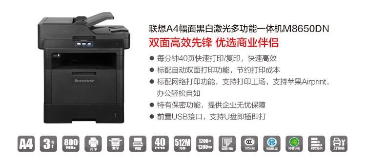 • 商品名称:联想 LENOVO M8650DN(自动双面打印/250页/黑白激光)多功能一体机