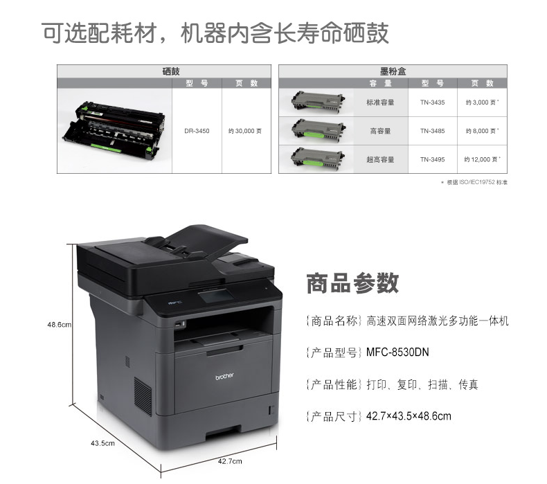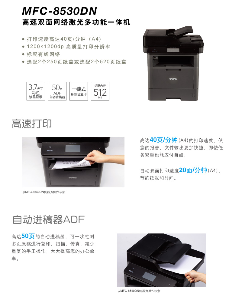 • 商品名称:兄弟 BROTHER 8530DN(250页/黑白激光)多功能一体机