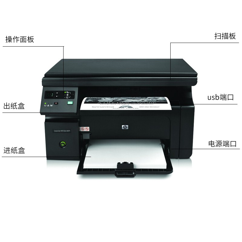 办公设备  > 打印/复印设备  > 复合机/一体机  >  惠普/HP  >  惠普 HP M1136(手动双面打印/150页/黑白激光)多功能一体机