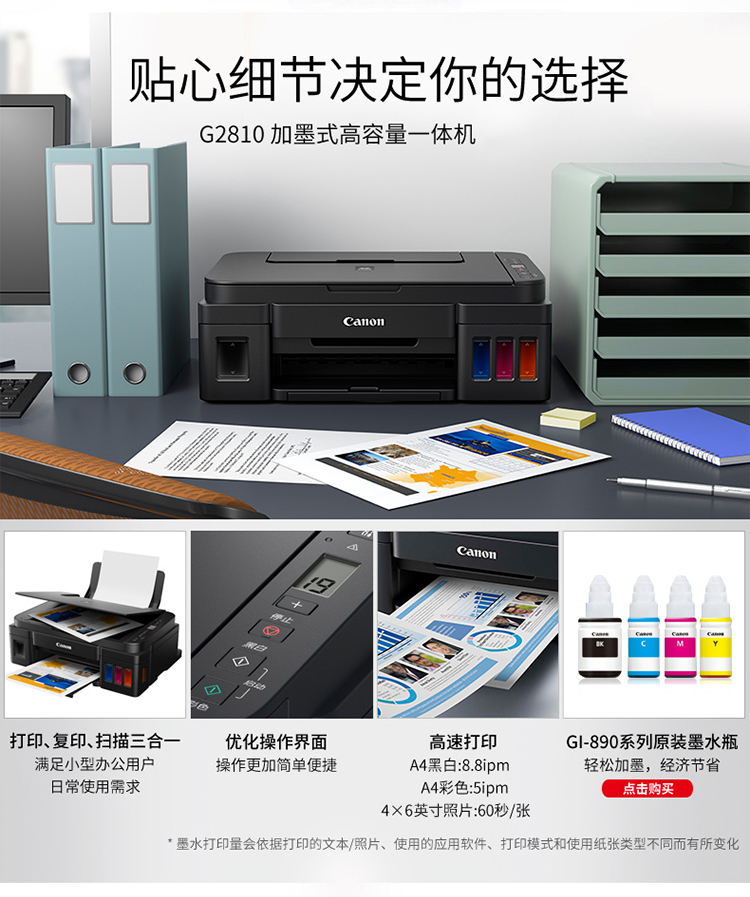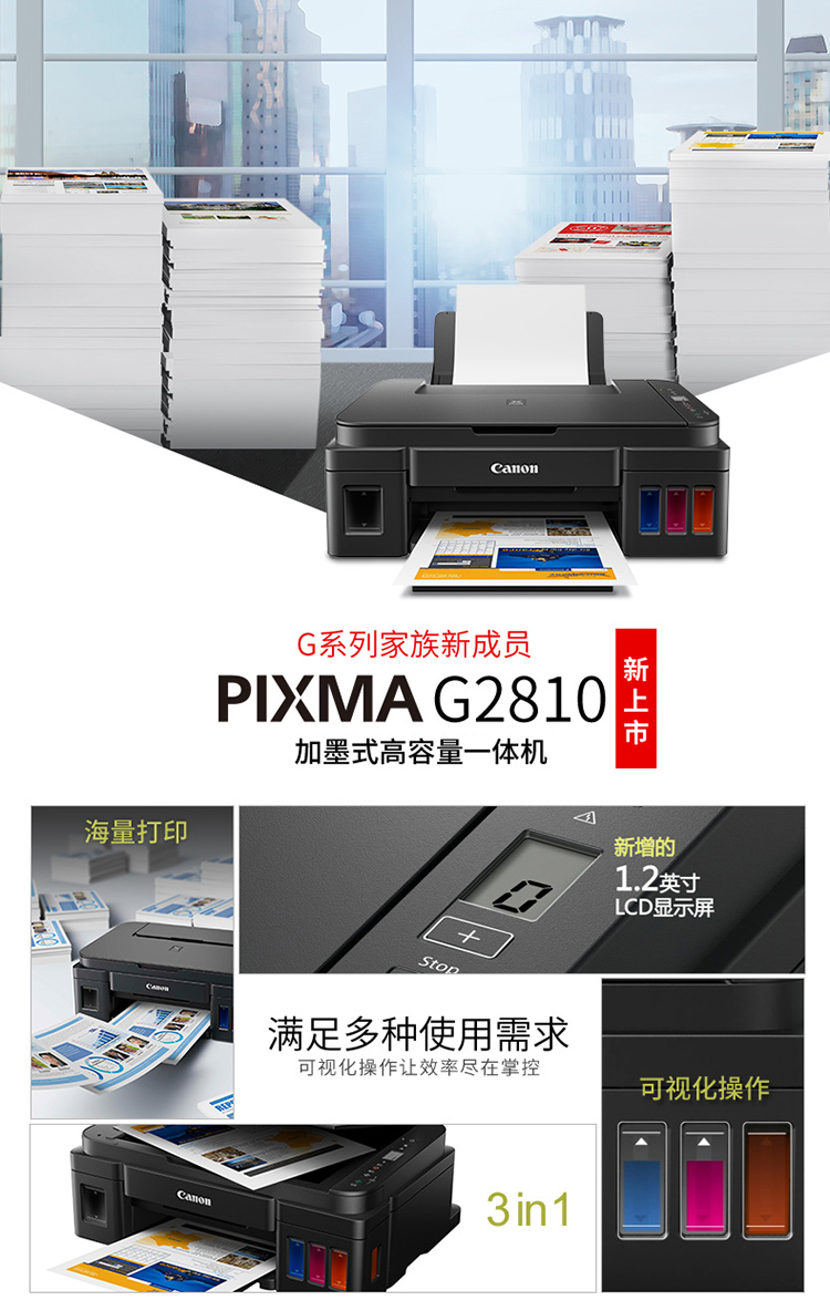 • 商品名称:佳能 CANON G2810(100页/彩色喷墨)多功能一体机