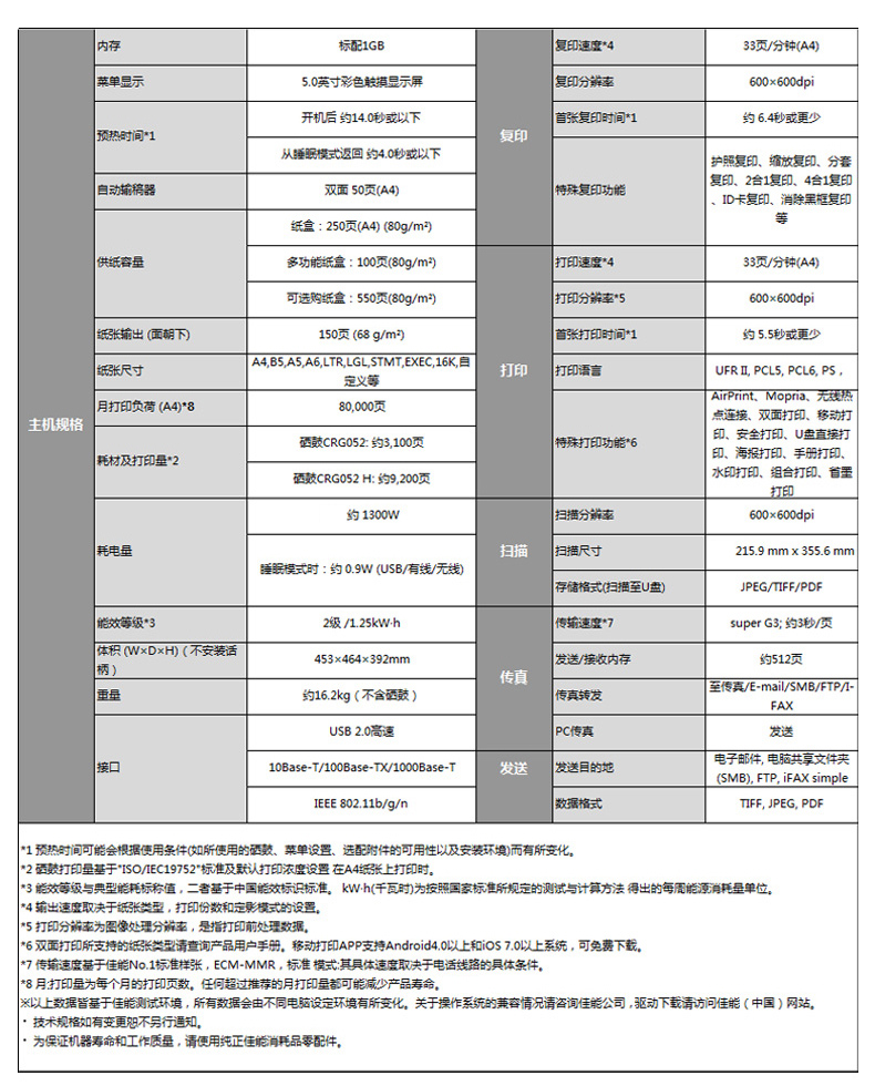• 商品名称:佳能 CANON IC MF423DW A4幅面黑白激光多功能一体机