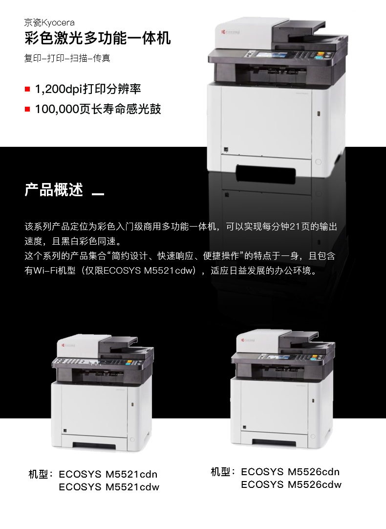 • 商品名称:京瓷 KYOCERA M5521CDN(自动双面打印/250页/彩色激光)多功能一体机