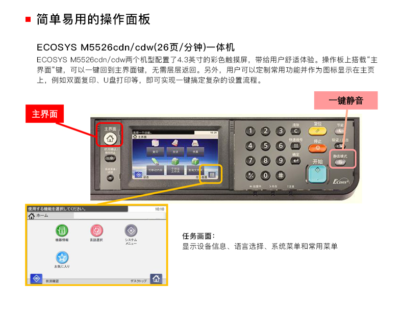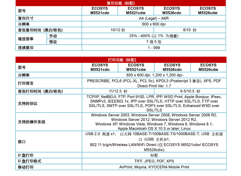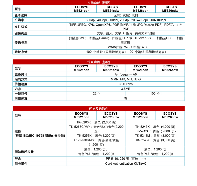 • 商品名称:京瓷 KYOCERA ECOSYS M5526CDW A4彩色四合一多功能一体机