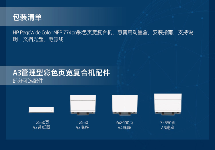 商品名称: 惠普 HP MFP774DN (自动双面打印/650页/彩色喷墨)多功能一体机