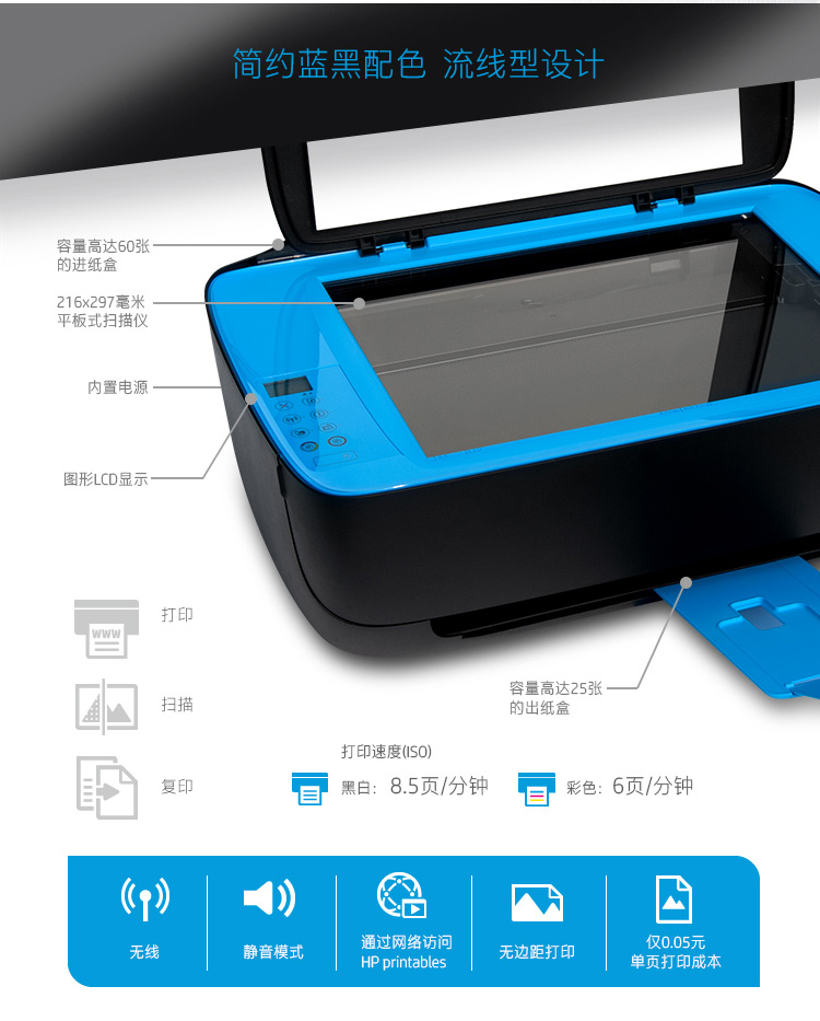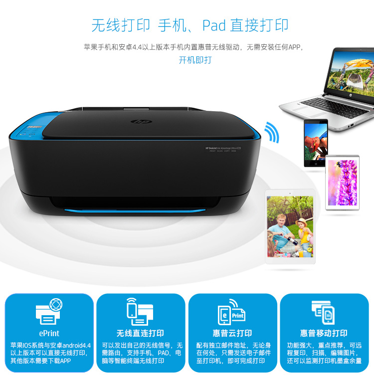 • 商品名称:惠普 HP 4729(手动双面打印/60页/彩色喷墨)多功能一体机