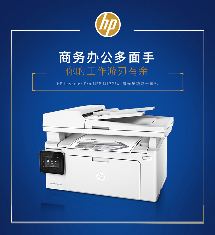 • 商品名称:惠普 HP M132FW(手动双面打印/150页/黑白激光)多功能一体机