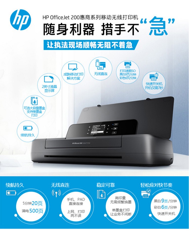 • 商品名称:惠普 HP OFFICEJET 258惠商系列移动办公一体机