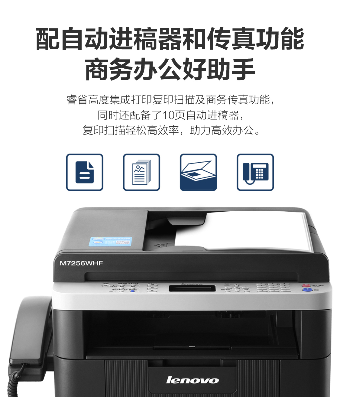 • 商品名称:联想 LENOVO M7256WHF(手动双面打印/150页/黑白激光)多功能一体机