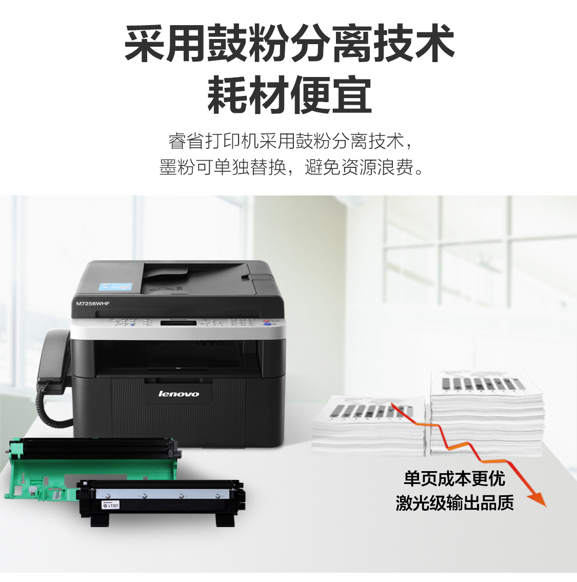 商品名称: 联想 LENOVO M7256WHF(手动双面打印/150页/黑白激光)多功能一体机