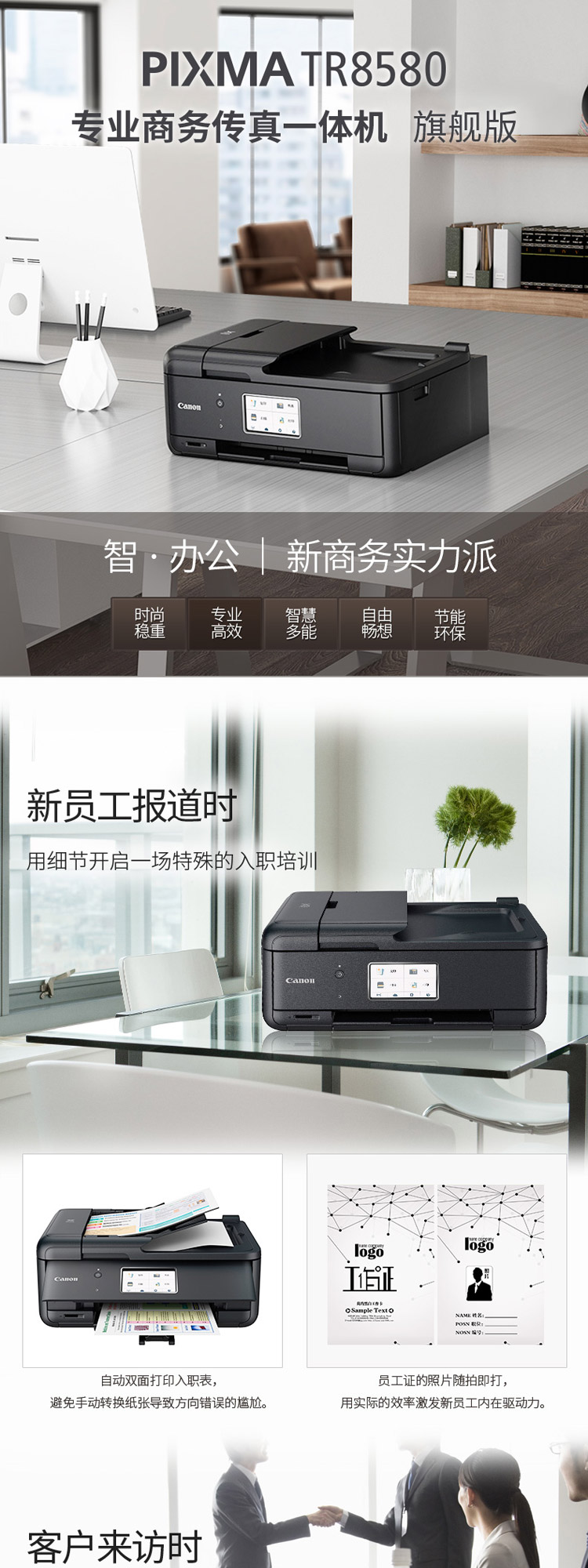 佳能 CANON TR8580(自动双面打印/100页/彩色喷墨)多功能一体机