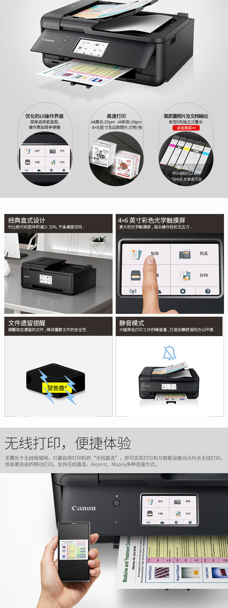 • 商品名称:佳能 CANON TR8580(自动双面打印/100页/彩色喷墨)多功能一体机
