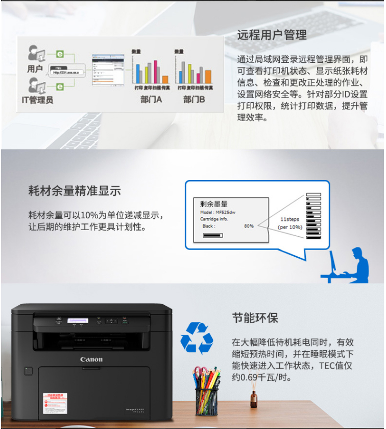佳能 CANON IC MF113W(无线/有线网络打印/150页/黑白激光)多功能一体机
