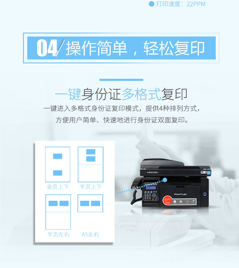 商品名称: 奔图 PANTUM M6605N(手动双面打印/150页/黑白激光)多功能一体机