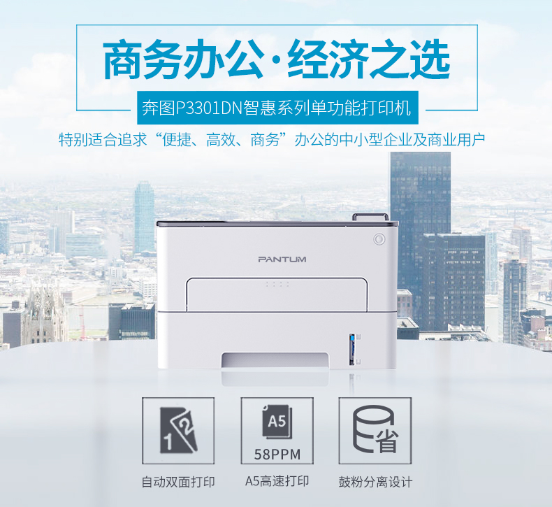 • 商品名称:奔图/Pantum P3301DN 黑白激光打印机 自动双面A4打印 USB打印 白色