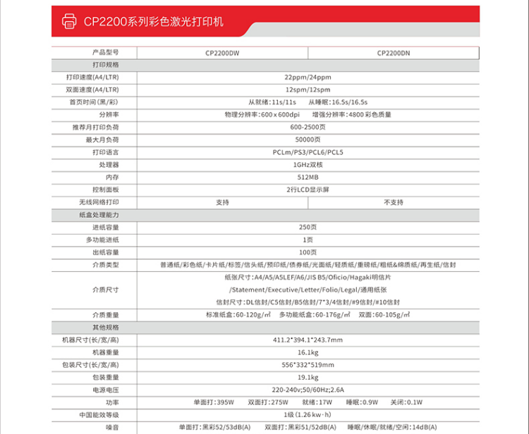 • 商品名称:奔图/Pantum CP2200DW 彩色激光打印机 自动双面无线 黑白色
