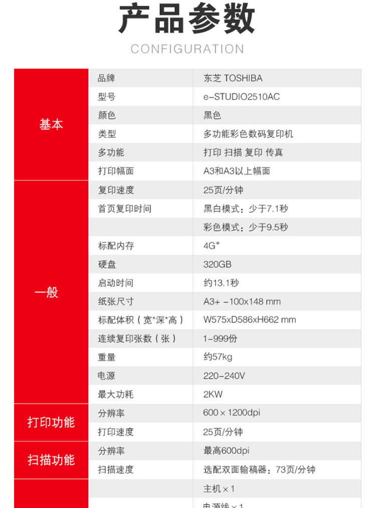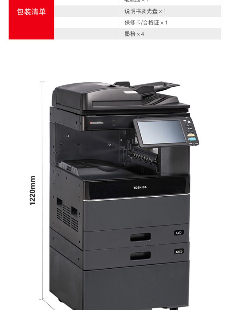 • 商品名称:东芝(TOSHIBA) FC-2510AC A3多功能彩色复合机多功能一体机 (主机+输稿器+双纸盒+工作台) 黑色(单位:台)