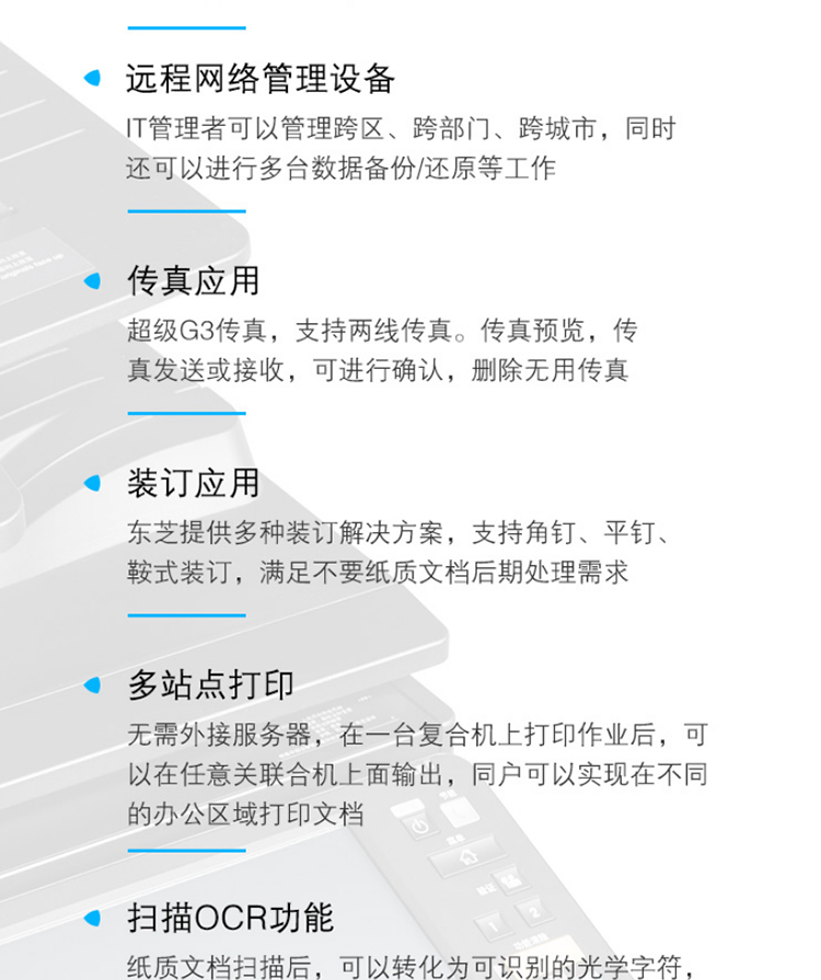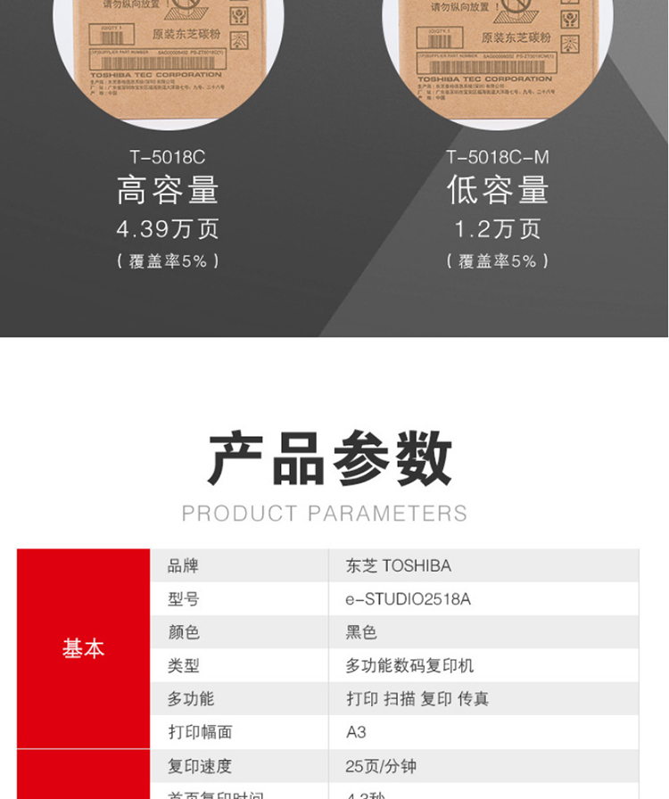 • 商品名称:东芝(TOSHIBA) DP-2518A A3黑白多功能复合机多功能一体机 (主机+自动输稿器+工作台) 黑色(单位:台)