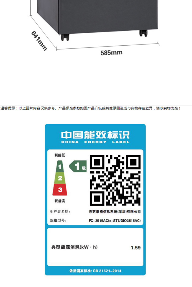 商品名称: 东芝(TOSHIBA) FC-3515AC A3多功能数码复合机多功能一体机 (主机+自动输稿器+工作台) 黑色(单位:台)