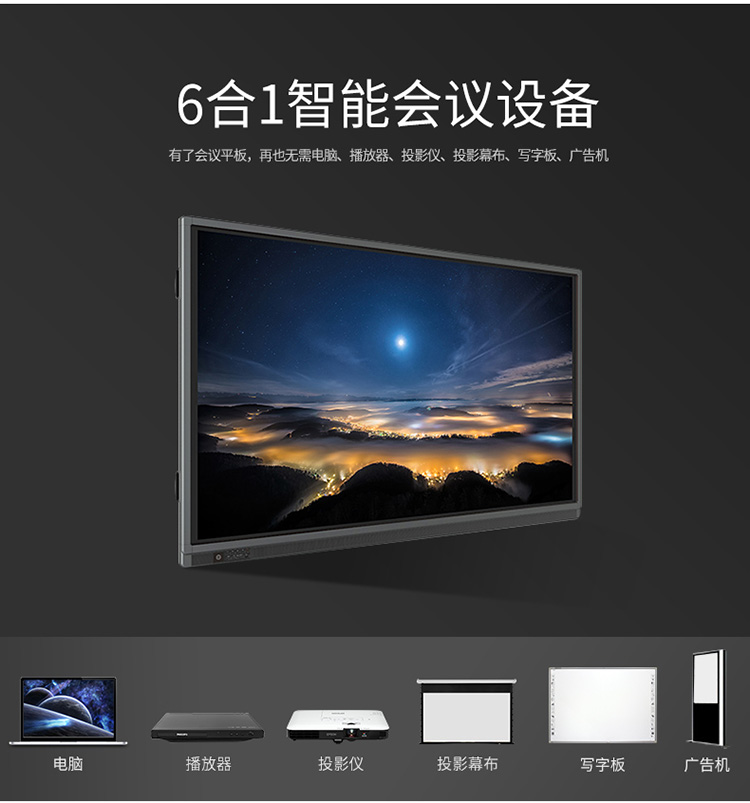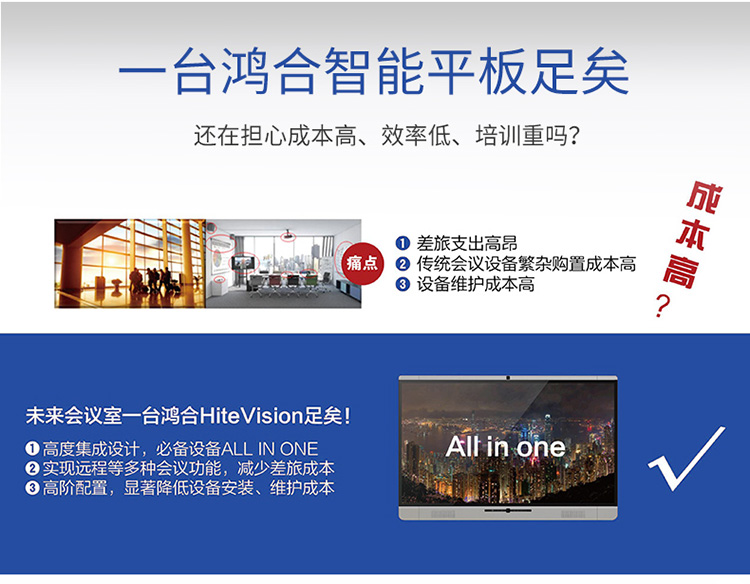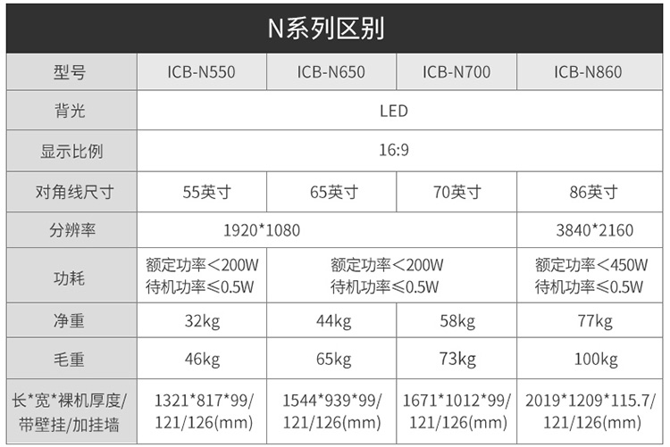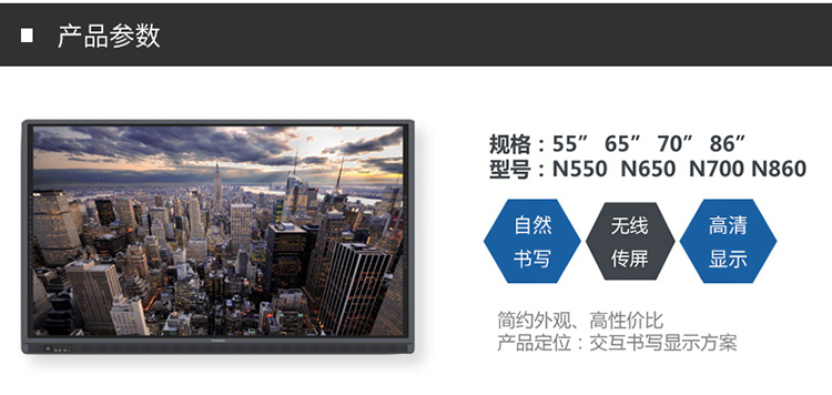 商品名称: 鸿合 ICB-N550 55寸商用会议触摸交互一体机(OPS:I5 8G 256G/WIFI模块/移动支架/翻页笔/安装调试及线材/培训指导)(单位:套)