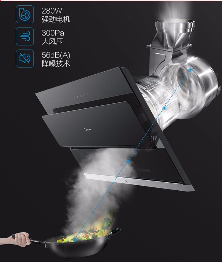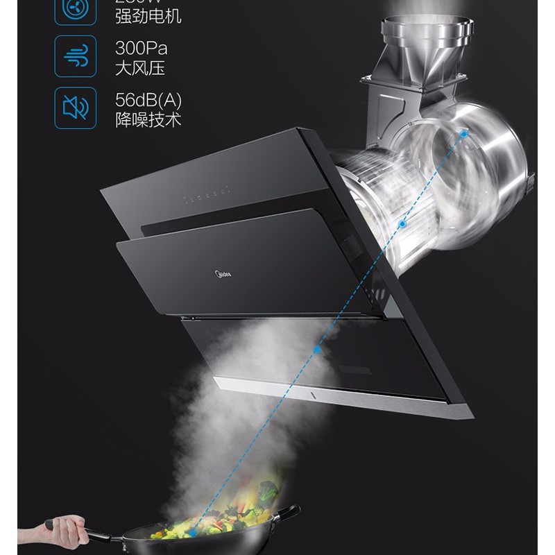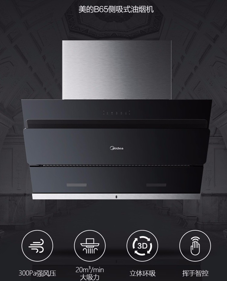 • 商品名称:美的 B65 20立方米大吸力家用侧吸抽油烟机wif 智能吸油烟机 侧吸式挥手触控 黑色 (单位:台)