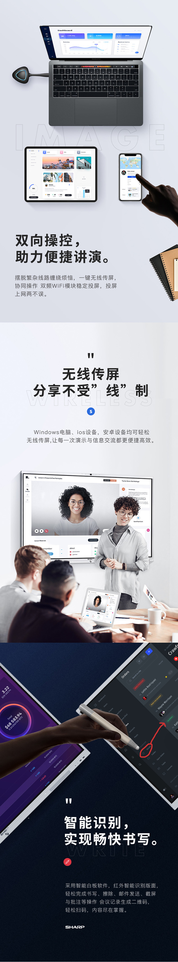 商品名称: 夏普(SHARP) PN-CM651 夏普智能会议平板65英寸 远程视频会议电子白板触摸智慧一体机商用显示办公教学无线传屏投影 单位:台