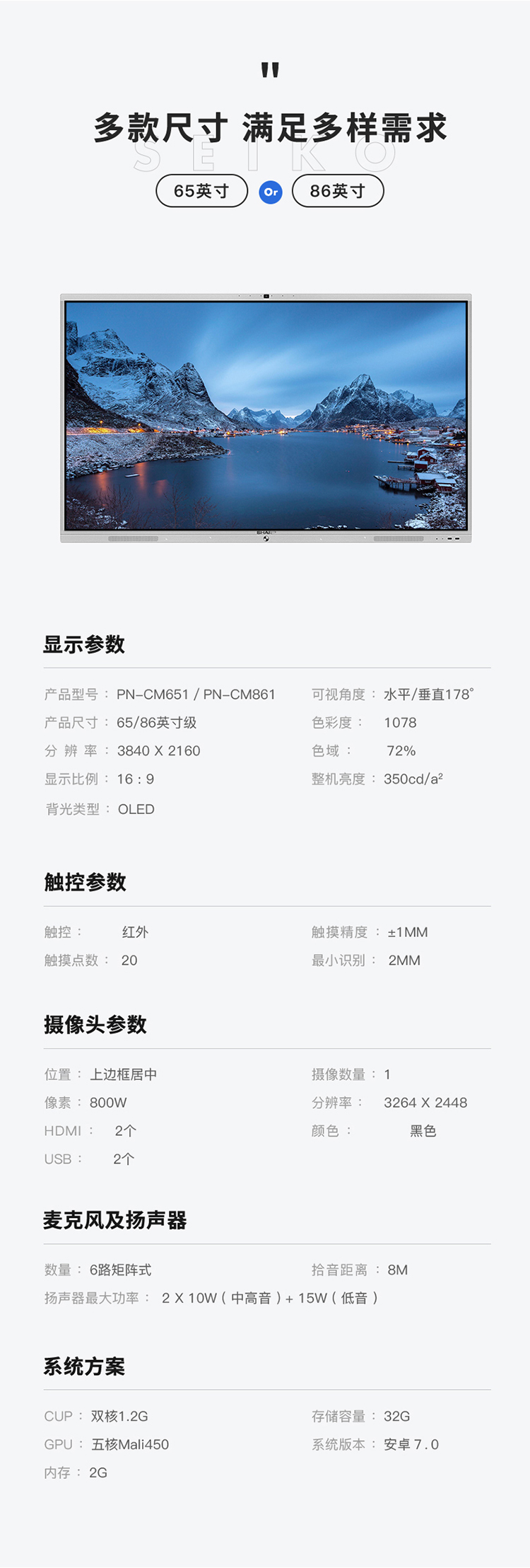 • 商品名称:夏普(SHARP) PN-CM651 夏普智能会议平板65英寸 远程视频会议电子白板触摸智慧一体机商用显示办公教学无线传屏投影 单位:台