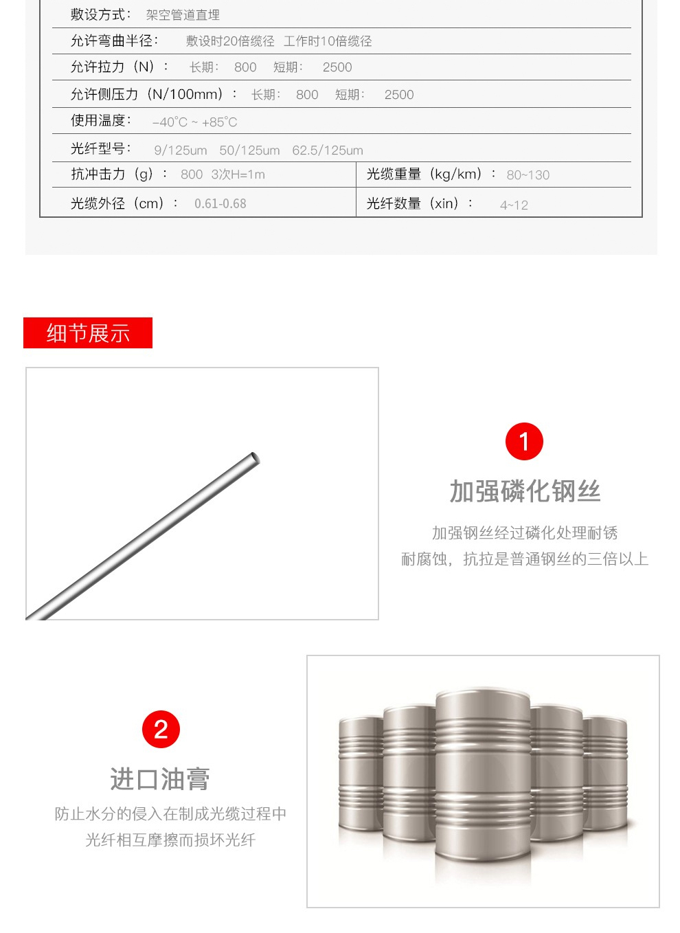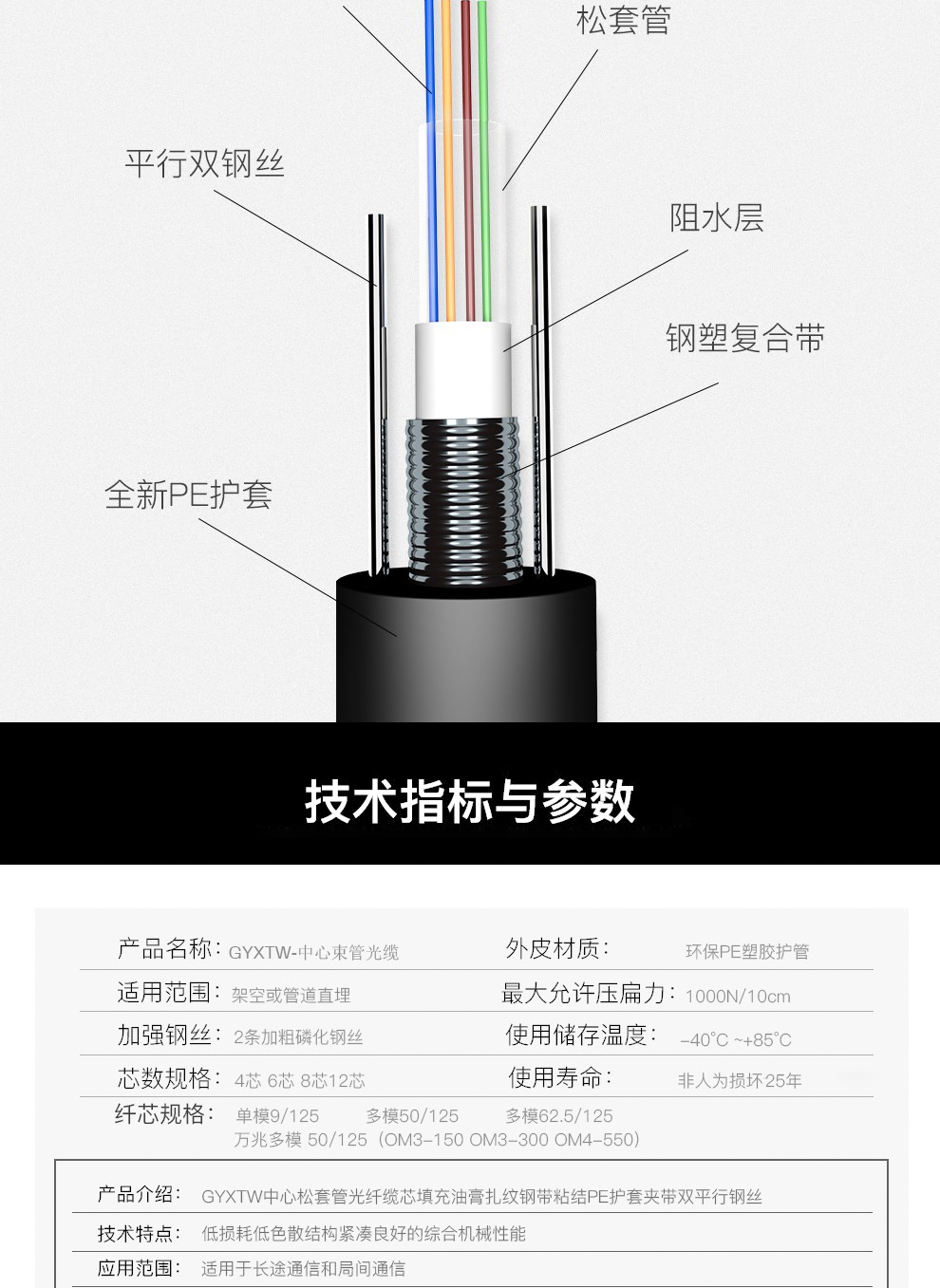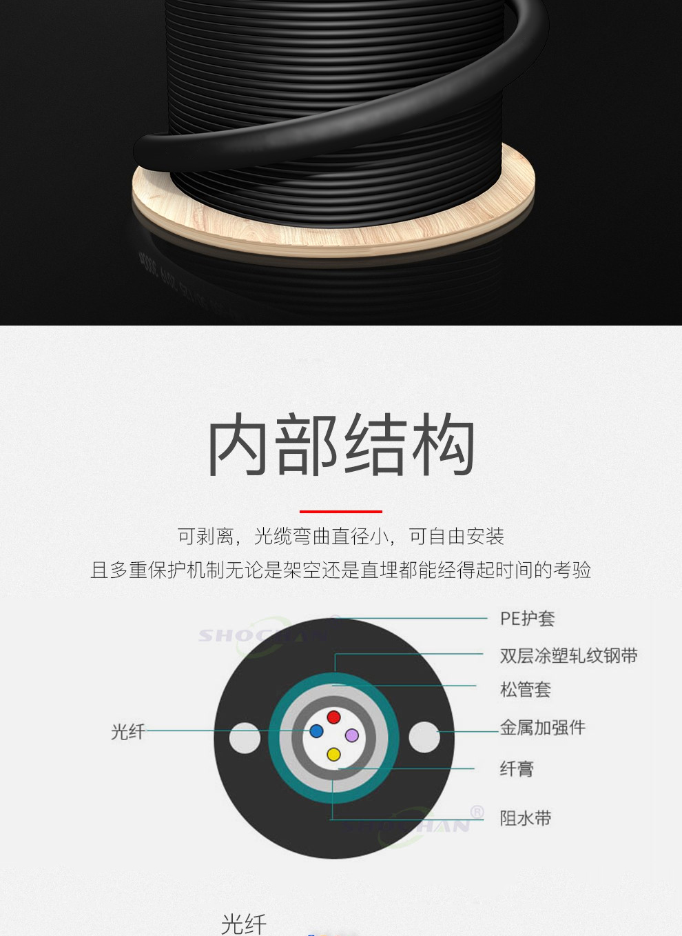 • 商品名称:首千 SHOCHAN SQ-GYXTW-12B1-06 单模室外铠装光缆 12芯室外光纤线架空地埋 1米